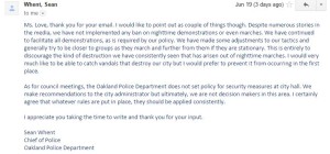 On Friday I emailed the mayor, city council and the chief of police regarding the protest rules and policies at city hall and the streets of #Oakland. So far I got two responses from Council President Lynette McElhaney and Chief Whent. I will update more if I get other responses. Here is my email:…